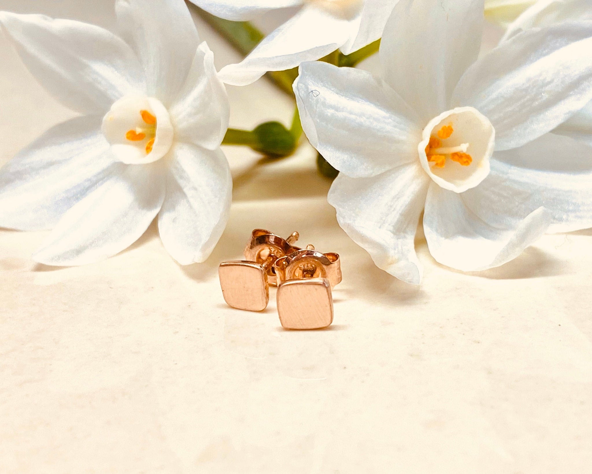 Handcrafted natural Rose Gold square stud earrings. Satin finish. Easy to wear and look great!