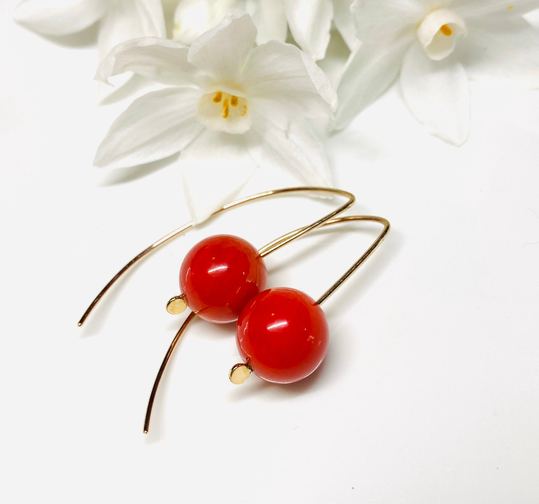 Handmade Coral and Yellow Gold "Delicious Earrings"