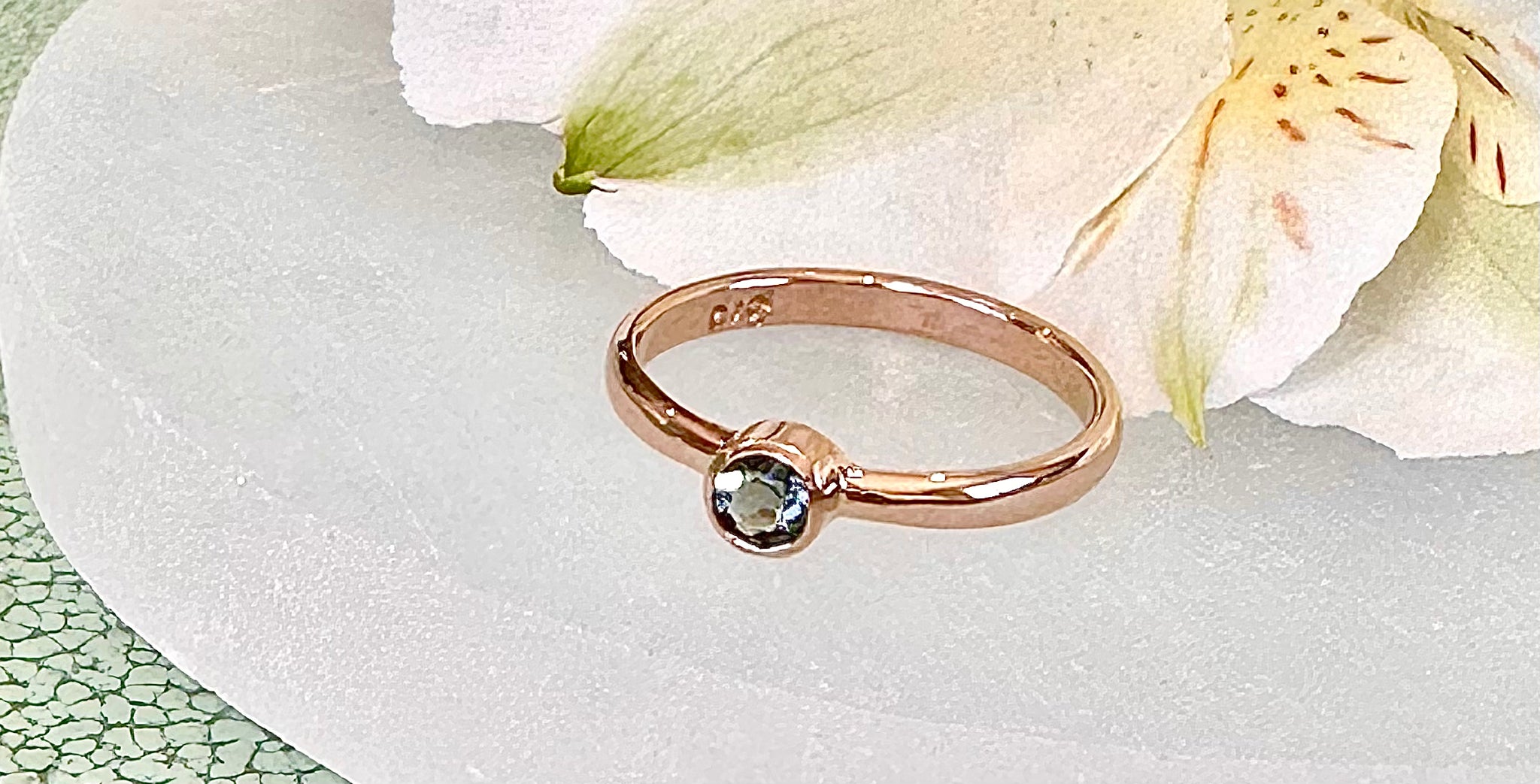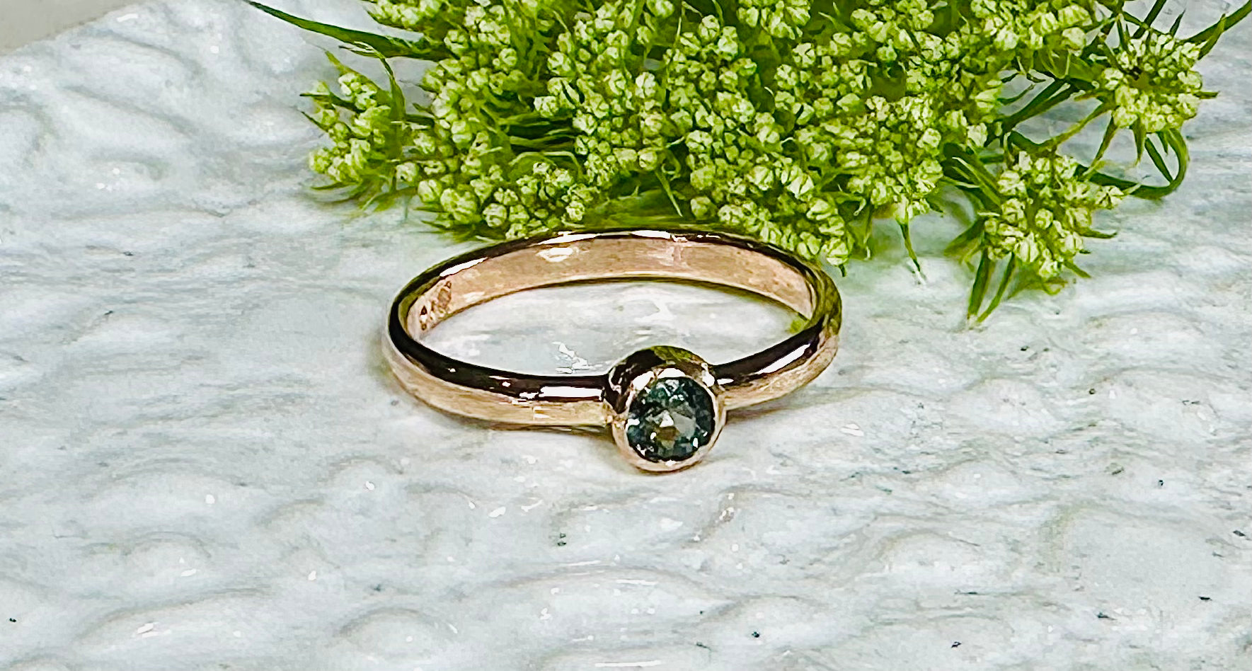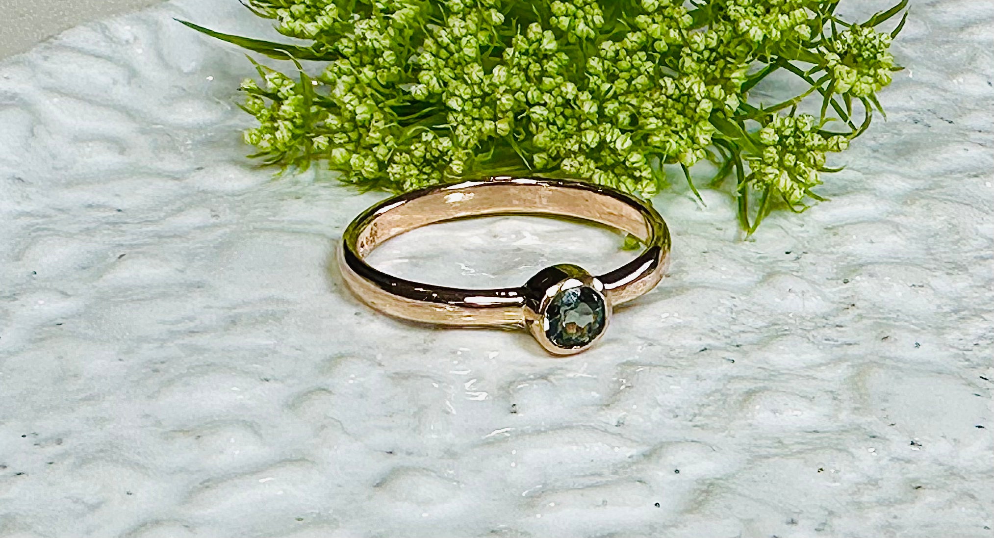 Lovely blue/green Tourmaline 9ct rose gold. Size M/12.