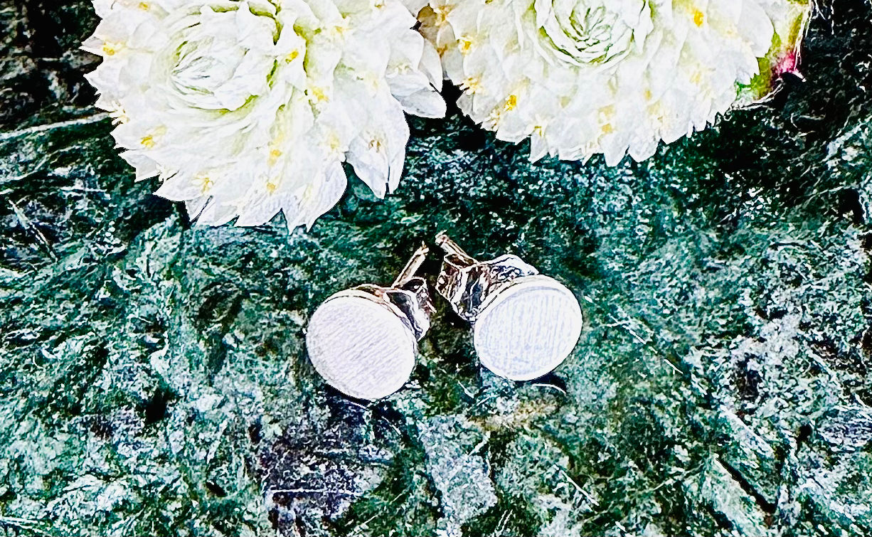 Round Studs in Sterling Silver. Can be ordered in a high policy, satin or hammered finish. Perfect for everyday wear!