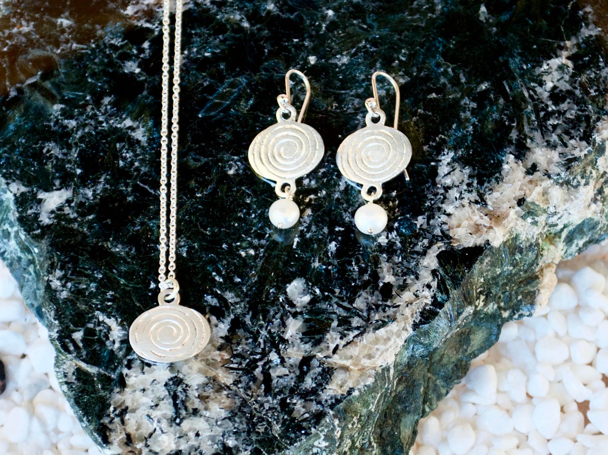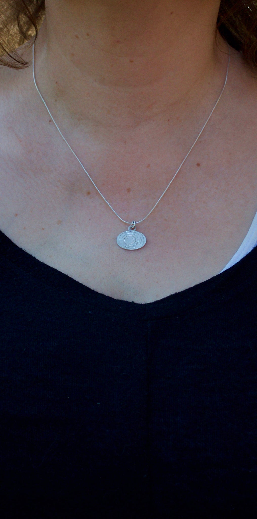 Handcrafted natural Solid Sterling Silver pendant, called the "Rustic Swirl Pendant". It is handmade in solid sterling silver 925. This pendant is made from sterling silver wire, coiled and soldered together. It hangs on a 45cm sterling silver chain. In the pictures it has been finished in a matt silver, however you can choose to have a high polished finish if you wish. This is a very sweet necklace, easy to wear anytime.